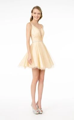 Flaunt those wonderful assets by pulling off this dazzling gown from the Alyce 61066 collection. The see-through fitted bodice is gently framed with a sleek V-neckline. The whole attire is subtly embroidered all over. Its A-line skirt flares revealing a slick thigh-high slit to show off those sexy legs.