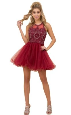 Dazzling Illusion Neckline A-line Gown by Andrea and Leo