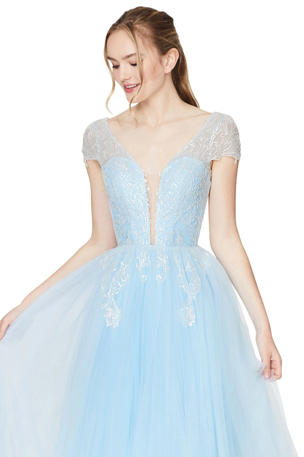 SKU: BMV3E 4188390522993 Category: Ball Gowns Tags: A-Line, Ball Gowns, Blackfriday19, Blue, Glittering Accents, Holiday Dresses, Long, Natural, New, No, Pageant Dresses, Short Sleeve, Tulle, V-Neck