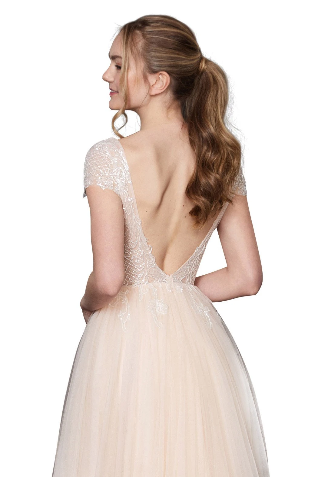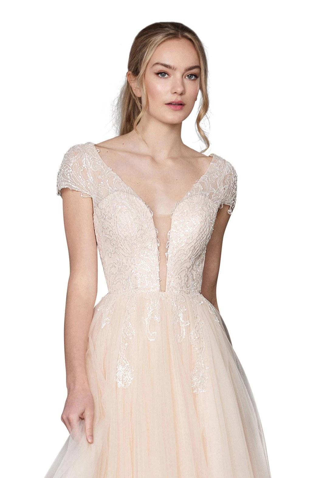 Cap Sleeve Embellished Evening Gown by Angela and Alison
