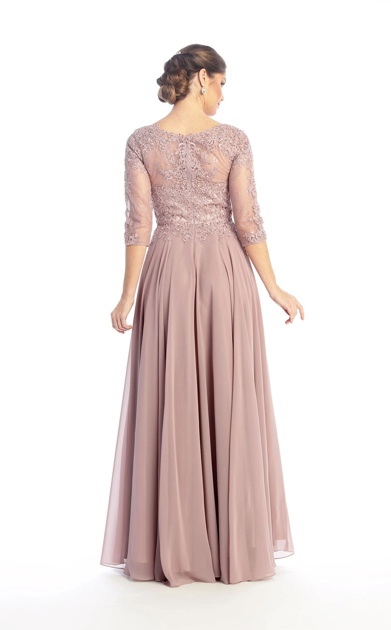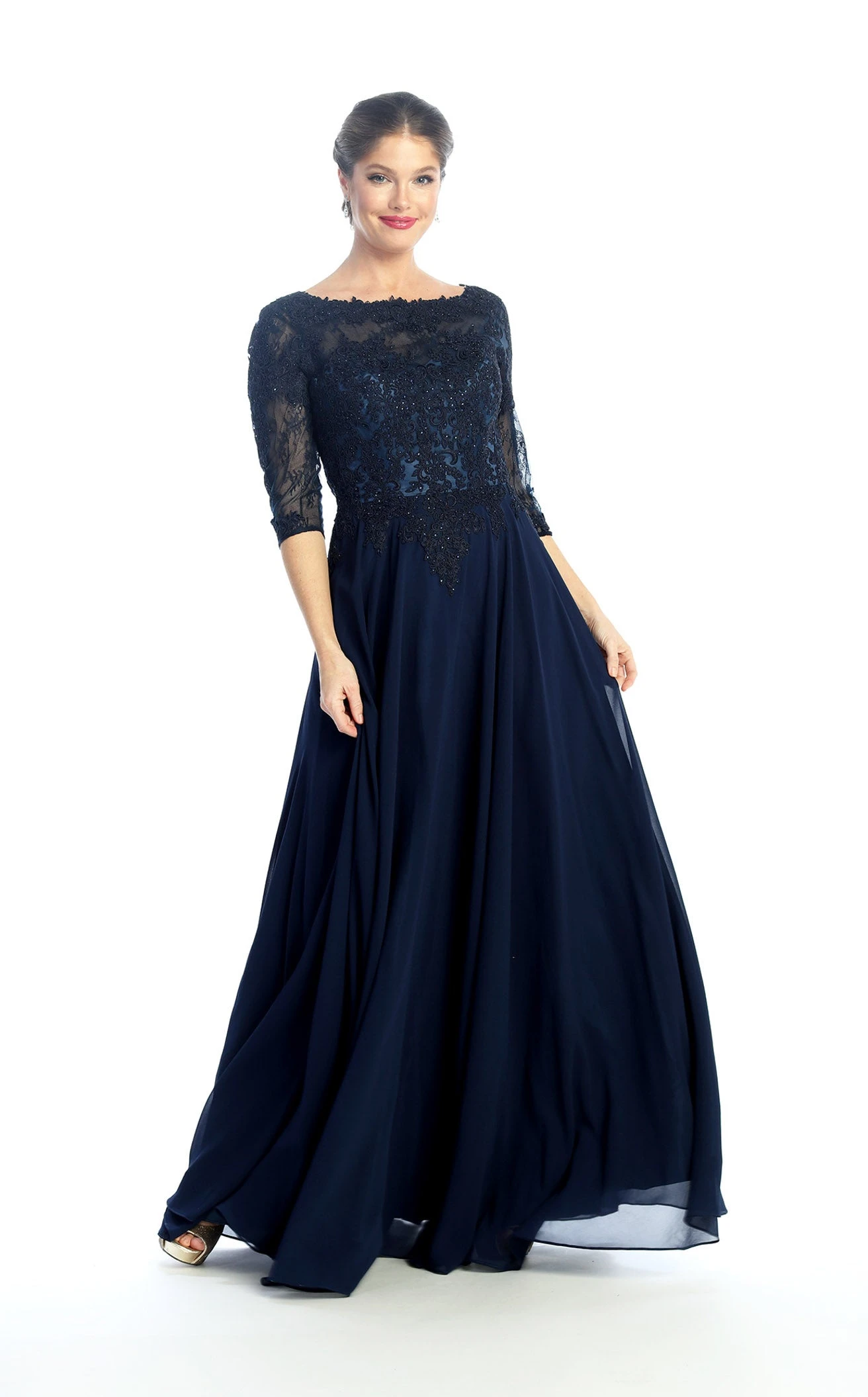 Your mom will be gorgeous in this fiery dress by Anny Lee. The boat neckline offers a classic and modest look whereas long sleeves add a touch of sophistication. It has a fitted bodice that is painted with embroidery lace, giving it a glamorous look. Further, an A-line silhouette cascades down to the floor.