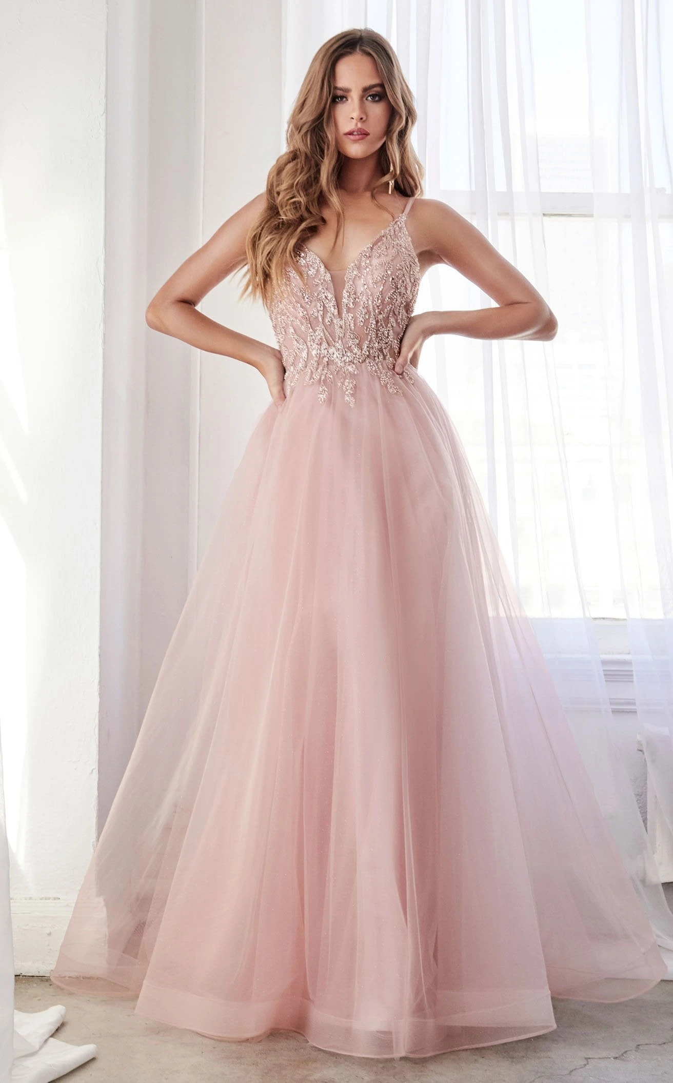 Look absolutely charming in Cinderella Divine CD0154 Dress. This superb piece features a a-line silhouette and glittering accents. The sleeveless bodice has a v-neck neckline and a natural waist.