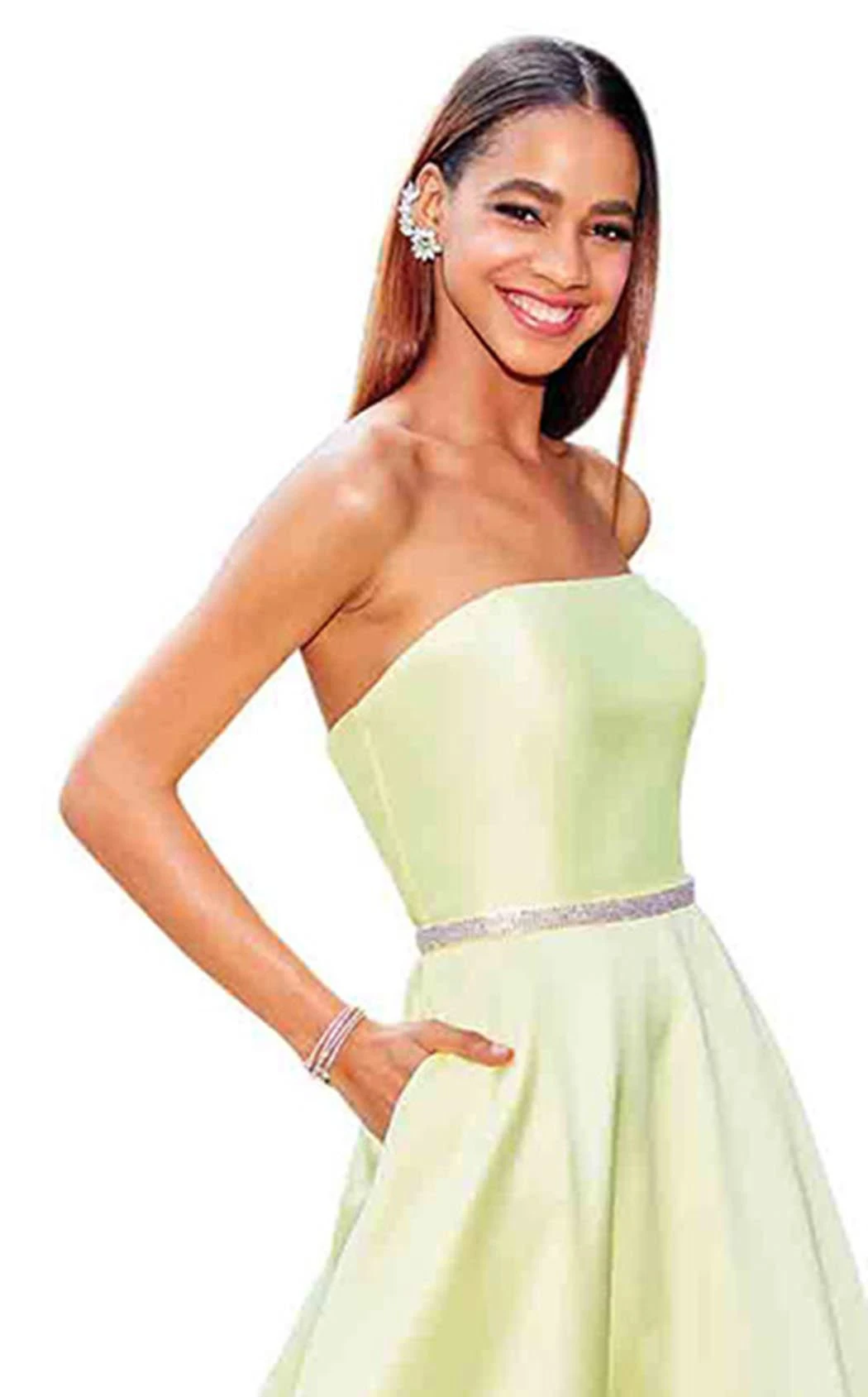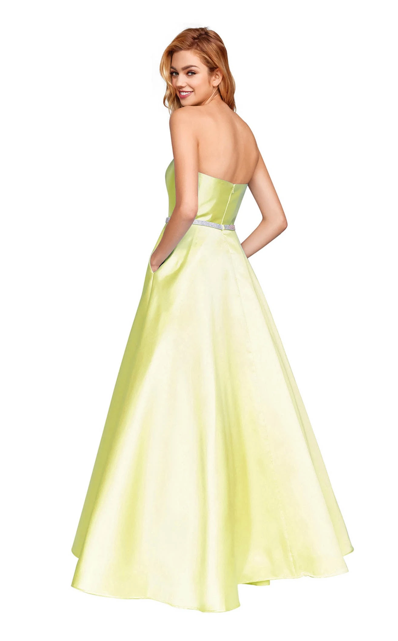 Strapless A-line gown with an embellished belt by ClarisseLook classy in this stylish A-line ballgown designed by Clarisse. Its strapless fitted bodice has a straight neckline complement by a mid-open back with zipper closure. The embellished waistband highlights your figure and gives way to the pleated A-line silhouette skirt that falls straight to the ground.