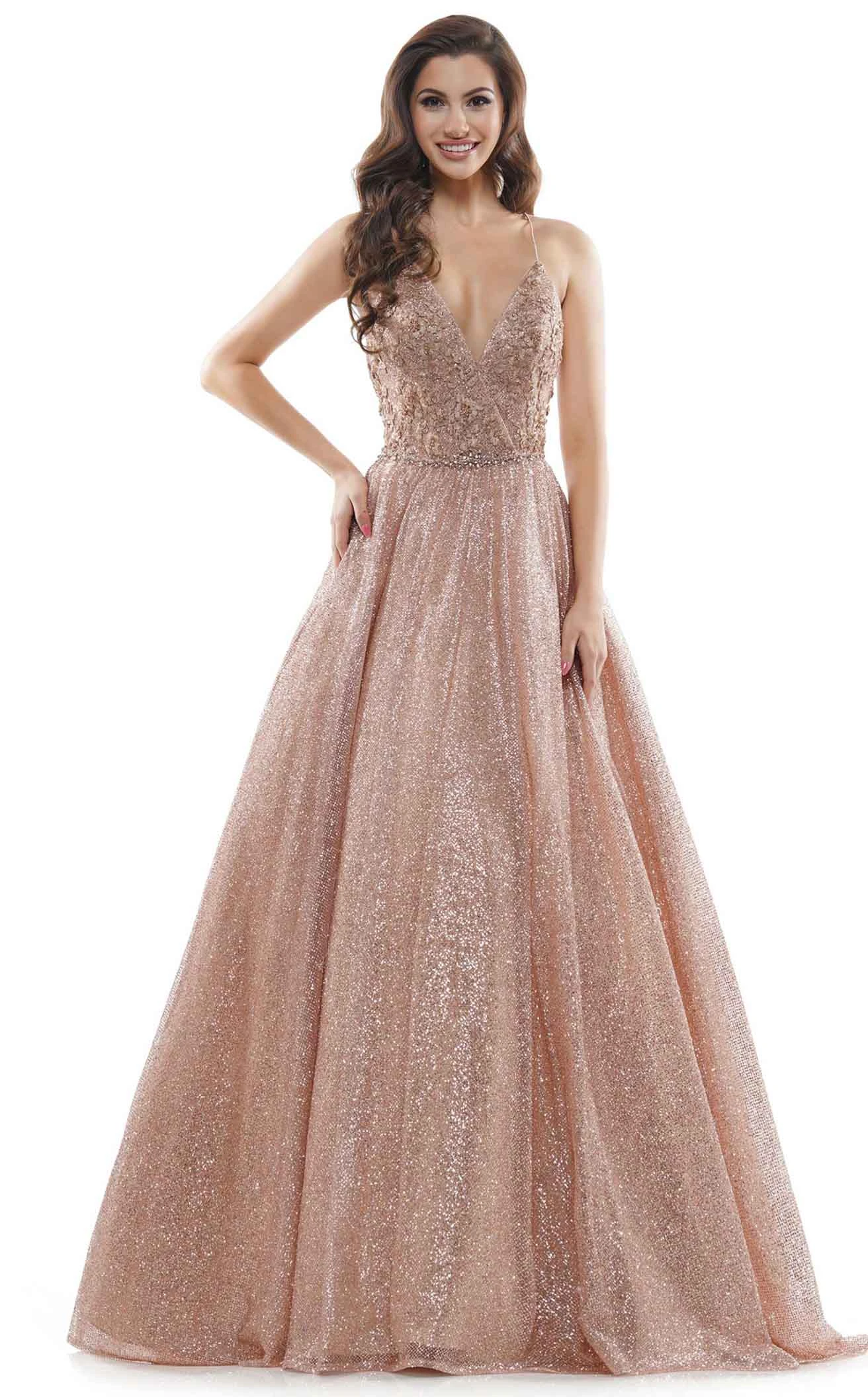Look absolutely divine in Colors Dress 2480 Dress. This divine piece features a a-line silhouette and glittering accents. The sleeveless bodice has a v-neck neckline and a natural waist.
