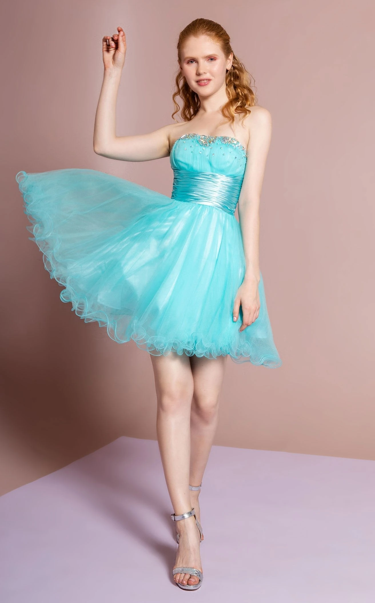 Strapless Bead Sequined Ruched Short Dress from Elizabeth K