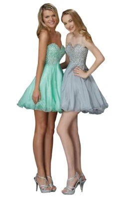 Gorgeous and graceful, this extraordinary short dress from Elizabeth K GS2088 is designed to enliven your prom look. The dress has a pronounced strapless, sweetheart neckline over the bead-embellished, corset bodice. Visualizing a nipped waist, the dress opens into an A-line silhouette as the mini skirt flaps to the curled hemline.