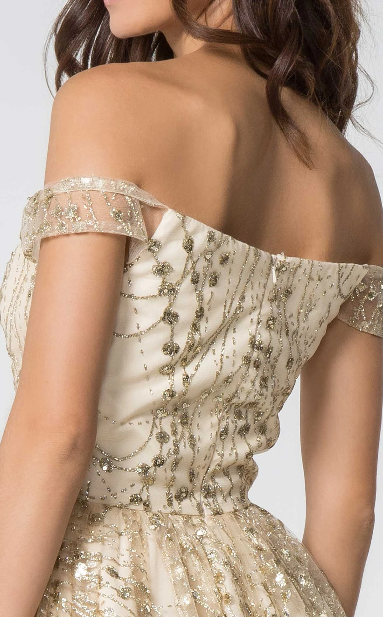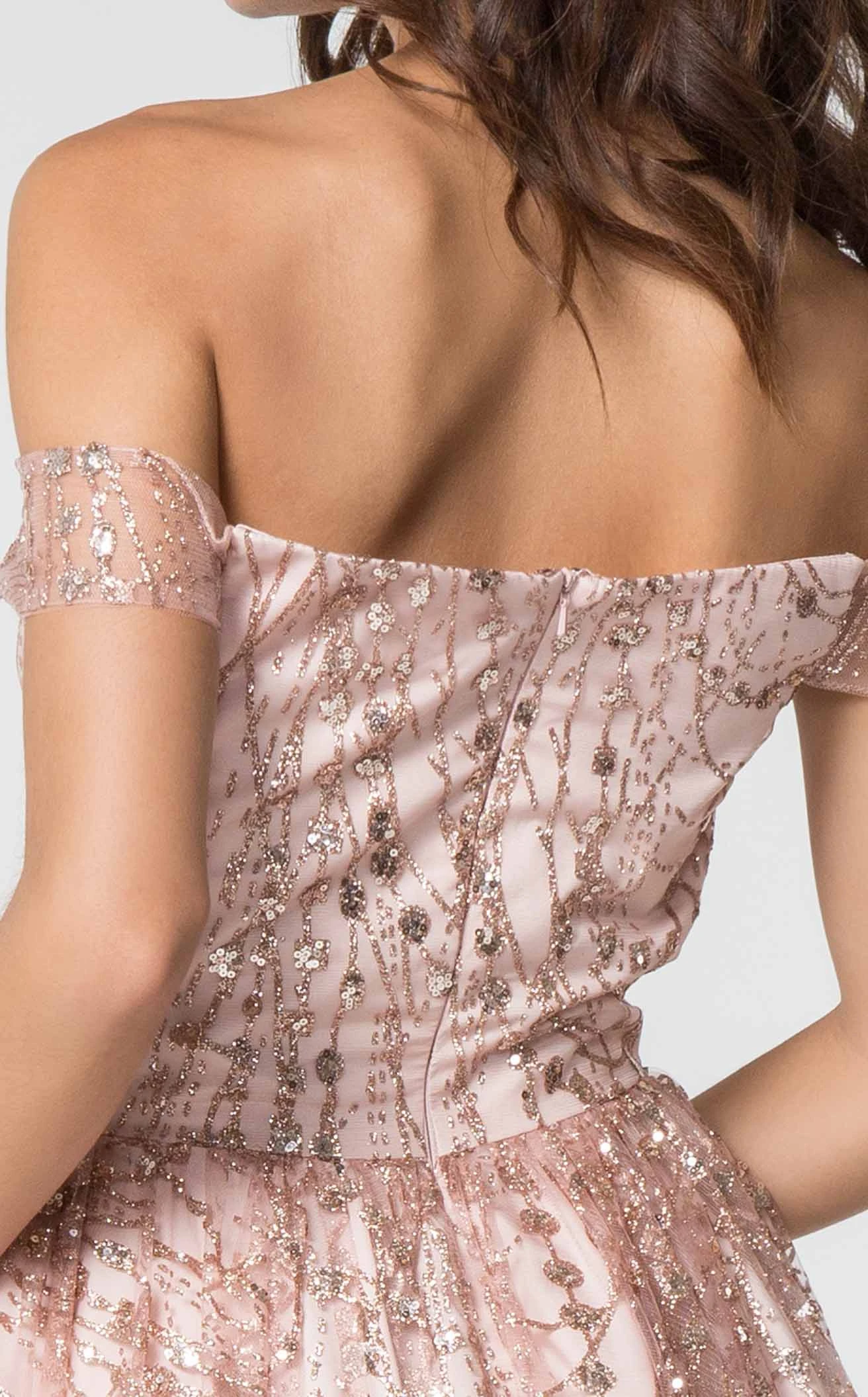 Glitter Embellished Off-shoulder Cocktail Dress from Elizabeth K
