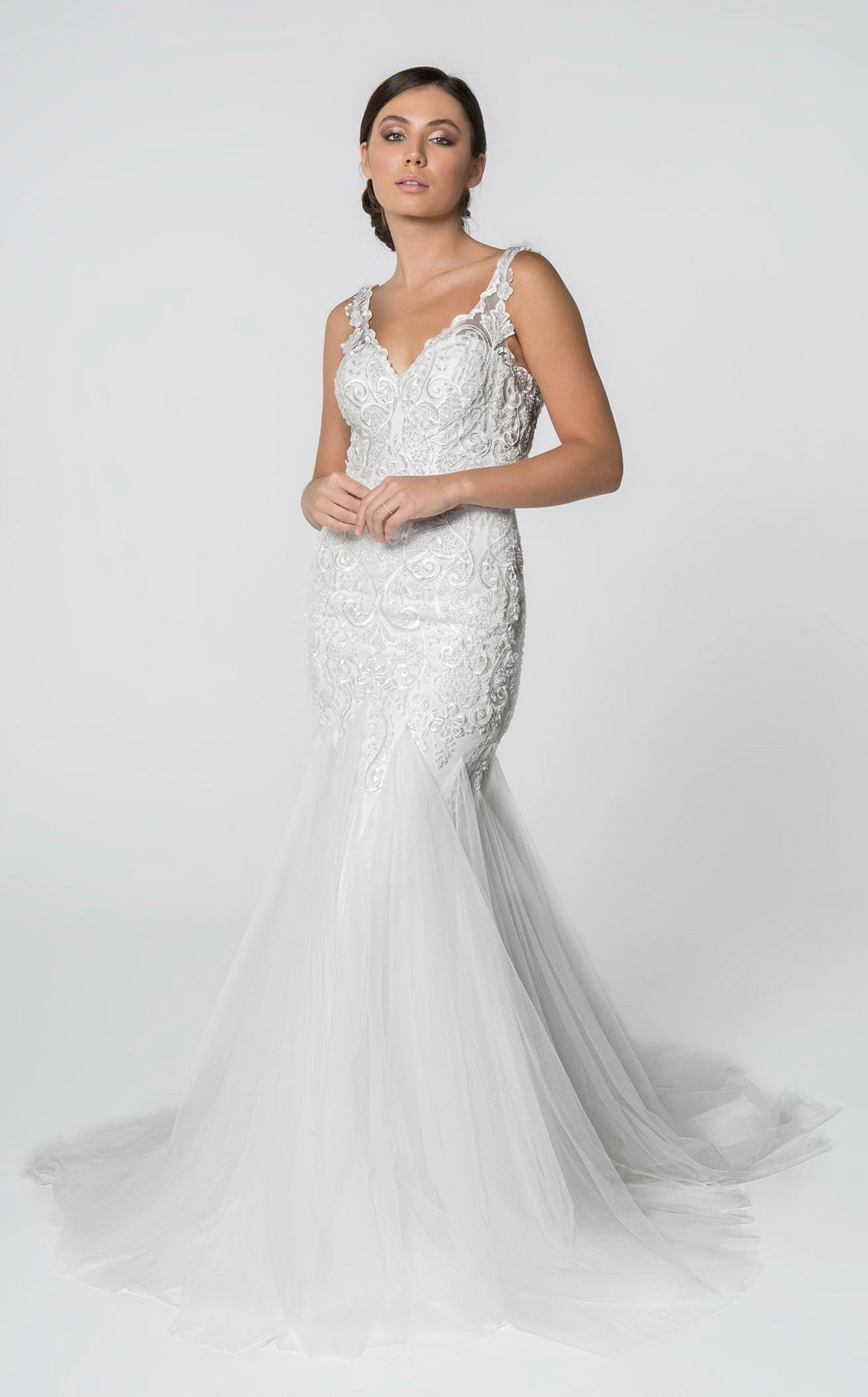 SKU: BMV3E 6661968461937 Category: Wedding Dresses Tags: Fit & Flare, Glittering Accents, Long, Natural, New, No, Sleeveless, V-Neck, Wedding Dresses