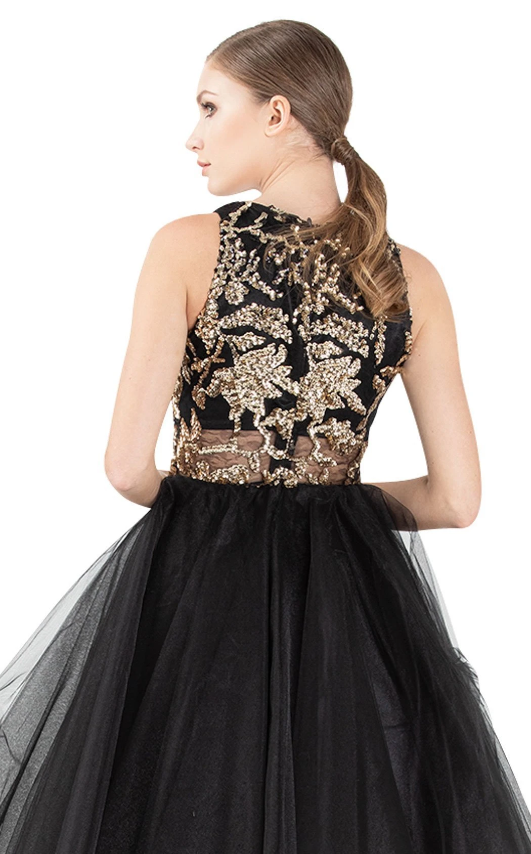 Look and feel glamorous in this cocktail dress from Ilmio 1988. Tailored to fit your curves, this creation is designed with a high neck bodice embellished with sparkling beads and reveals a sheer waist. Cinched at the waistline, a tulle skirt flutters down to the mid-thigh length for a fabulous look.