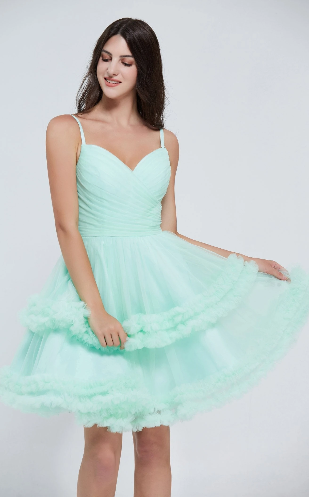 Feel gorgeous in this pretty dress by Jadore J20080. This dress features a sweetheart neckline with spaghetti straps accentuating your décolletage. The overlapping pleats on the bodice of this simple yet stylish dress give it a decent look. The outfit’s A-line silhouette above the knee-length adds a modish touch to your personality. Adorn this to your college party and let this dress flare along with your cheerful mood.