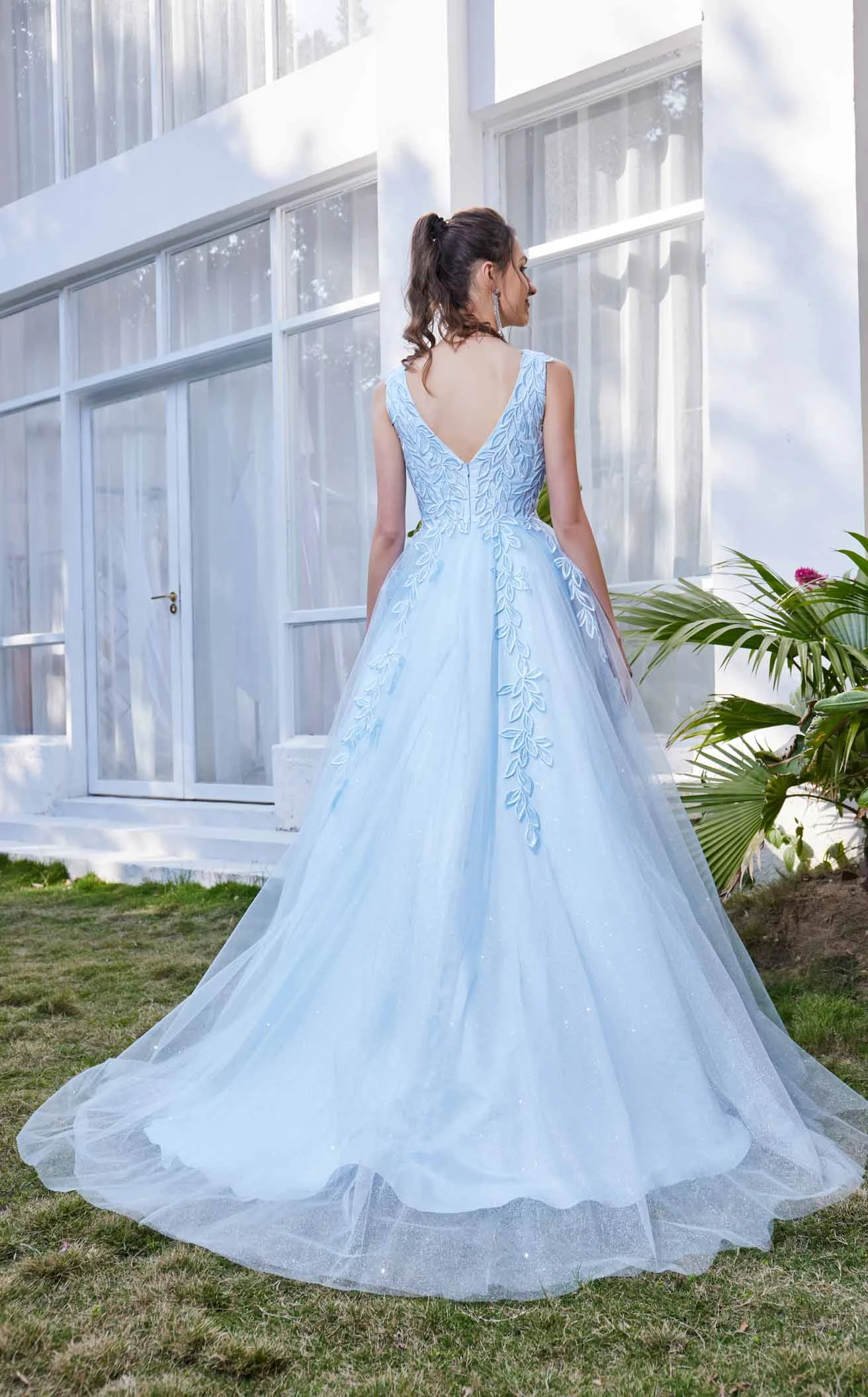 An exquisite and luxurious tulle dress by Jadore J21032 that is perfect for your formal occasions. The sleeveless bodice is adorned with leaf appliques on the torso that cascades dramatically towards the silhouette. The dress features a V-neckline showing off your beautifully structured face. The A-line silhouette is easy to wear and moves with you, while the tulle overlay gives the dress a beautiful touch of elegance.