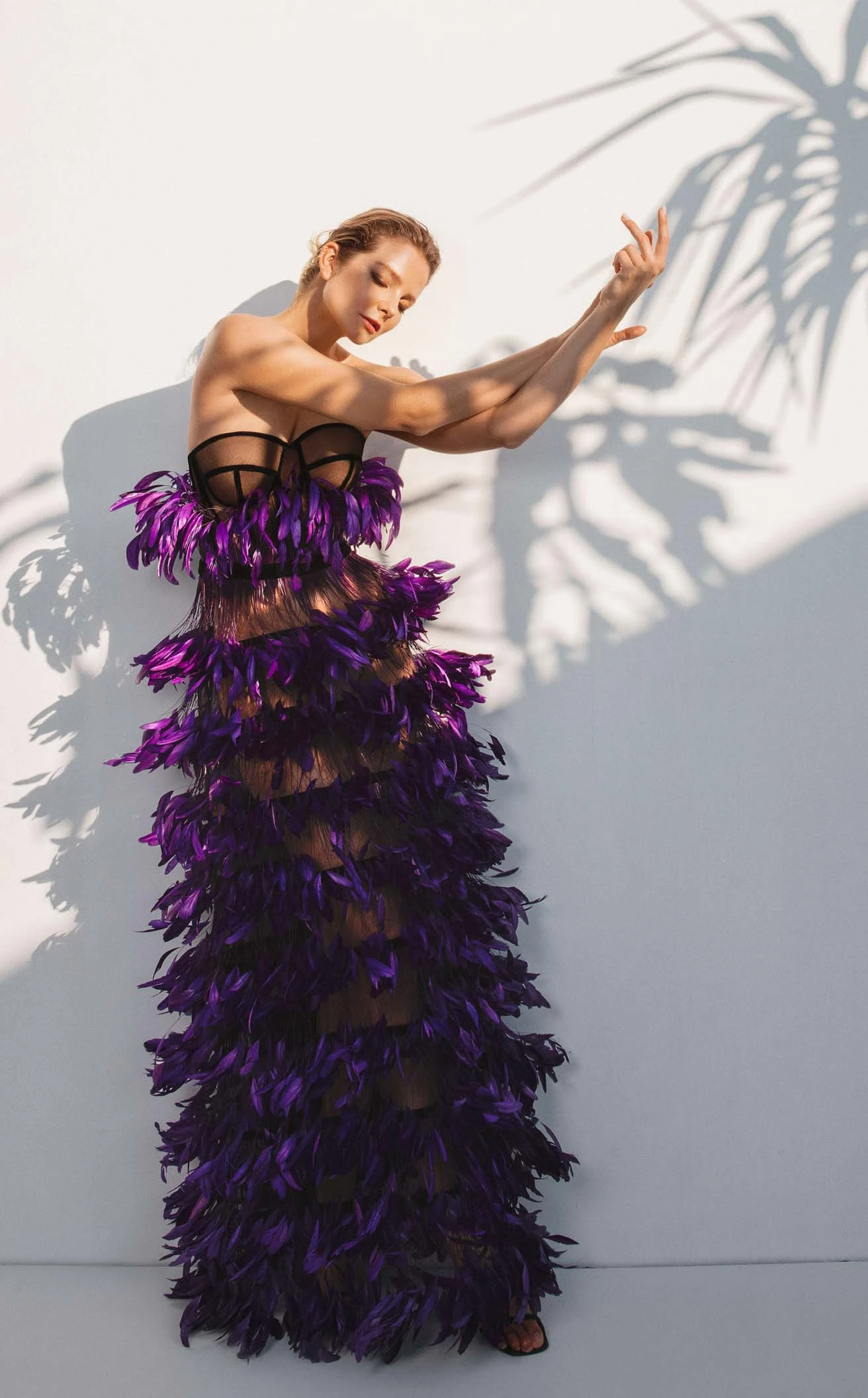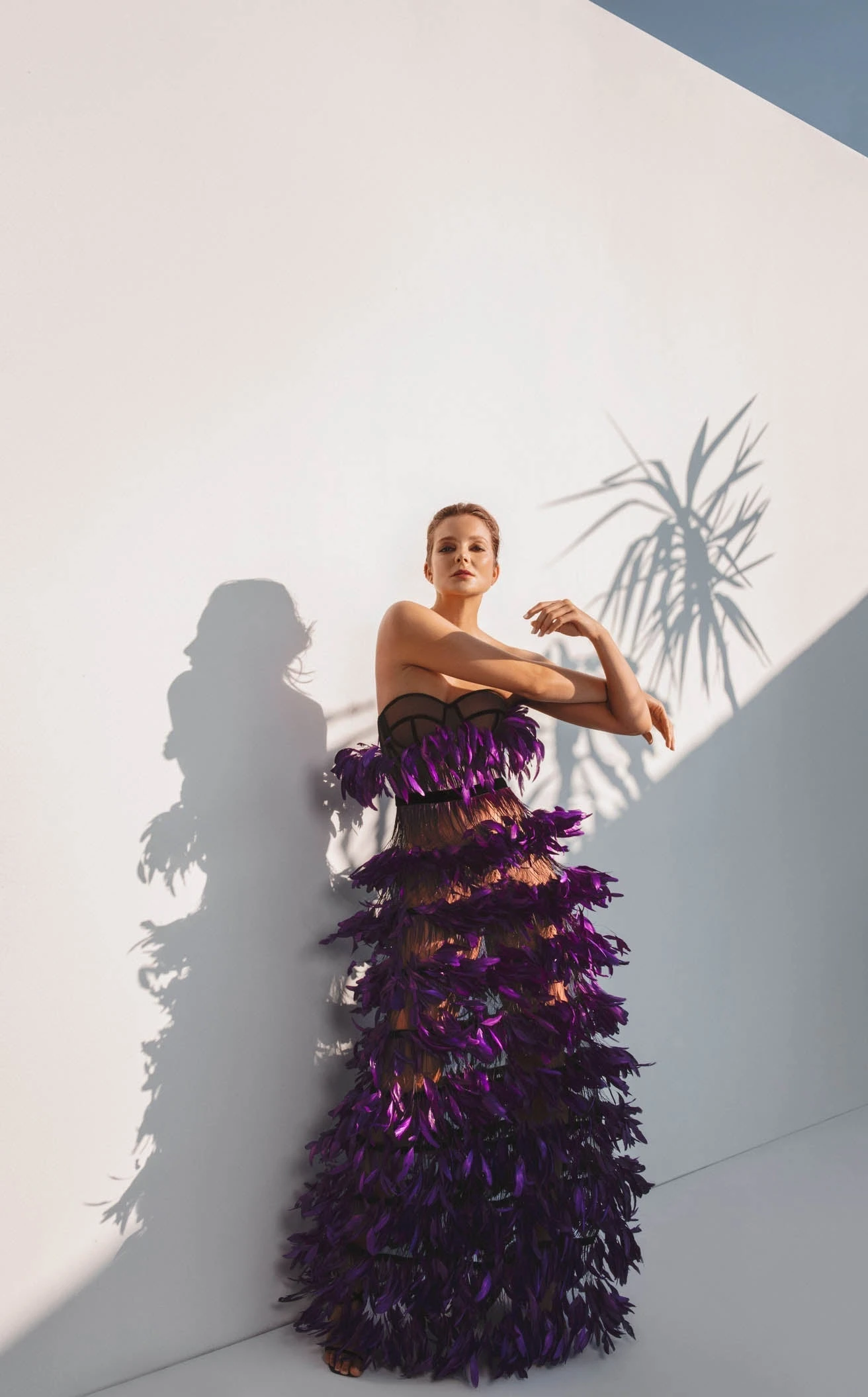 Strapless Sweetheart Neckline Layered Feather Accented A-line Dress by Jean-Louis Sabaji