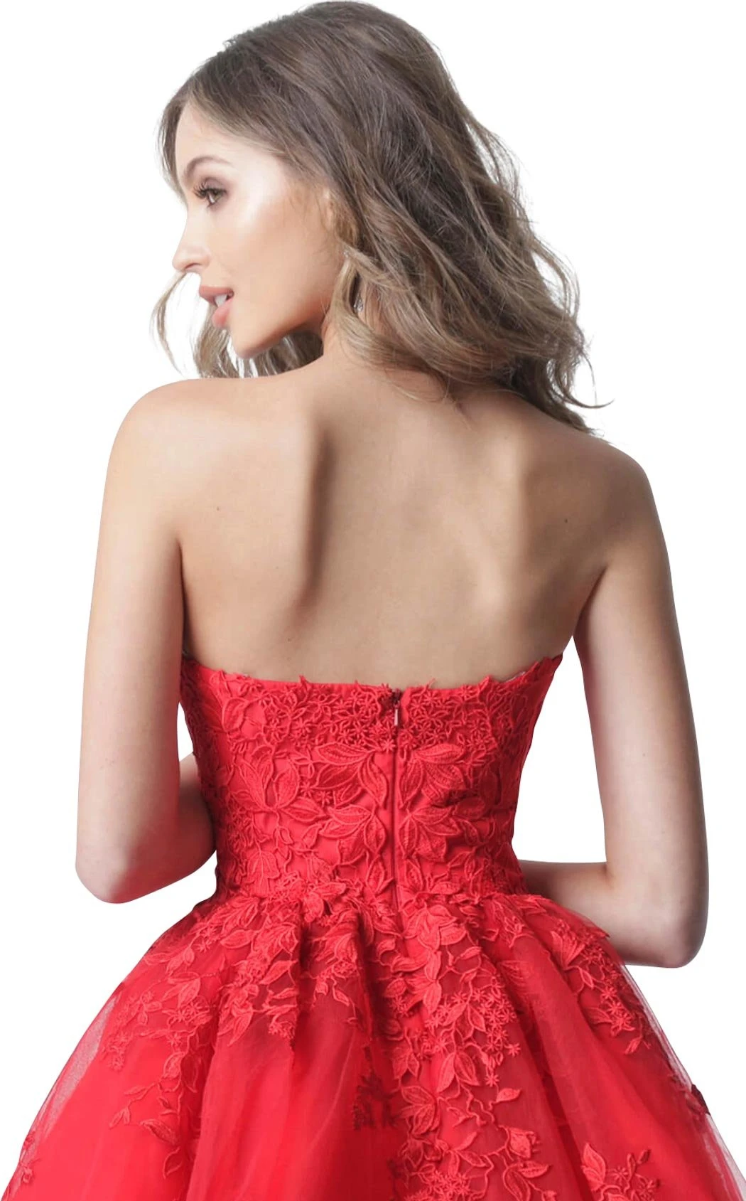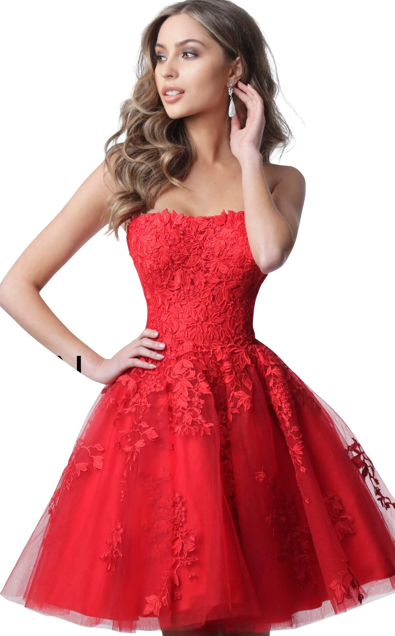 Elegant strapless floral lace applique short dress from JVN By Jovani