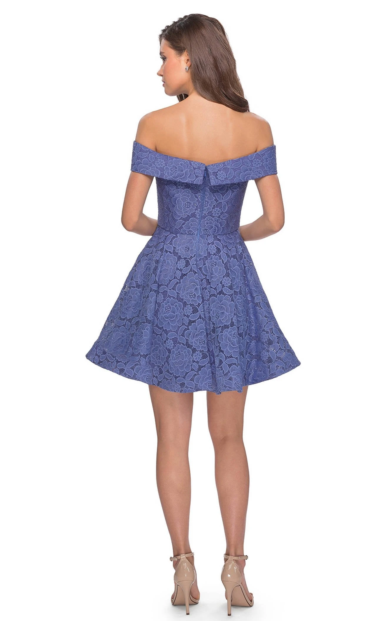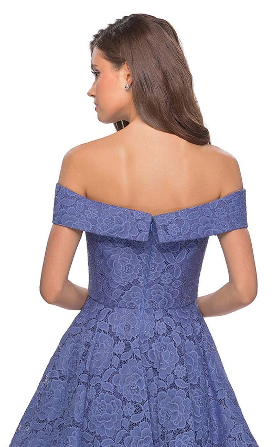 Ultimate off-the-shoulder short formal with shimmer by La Femme