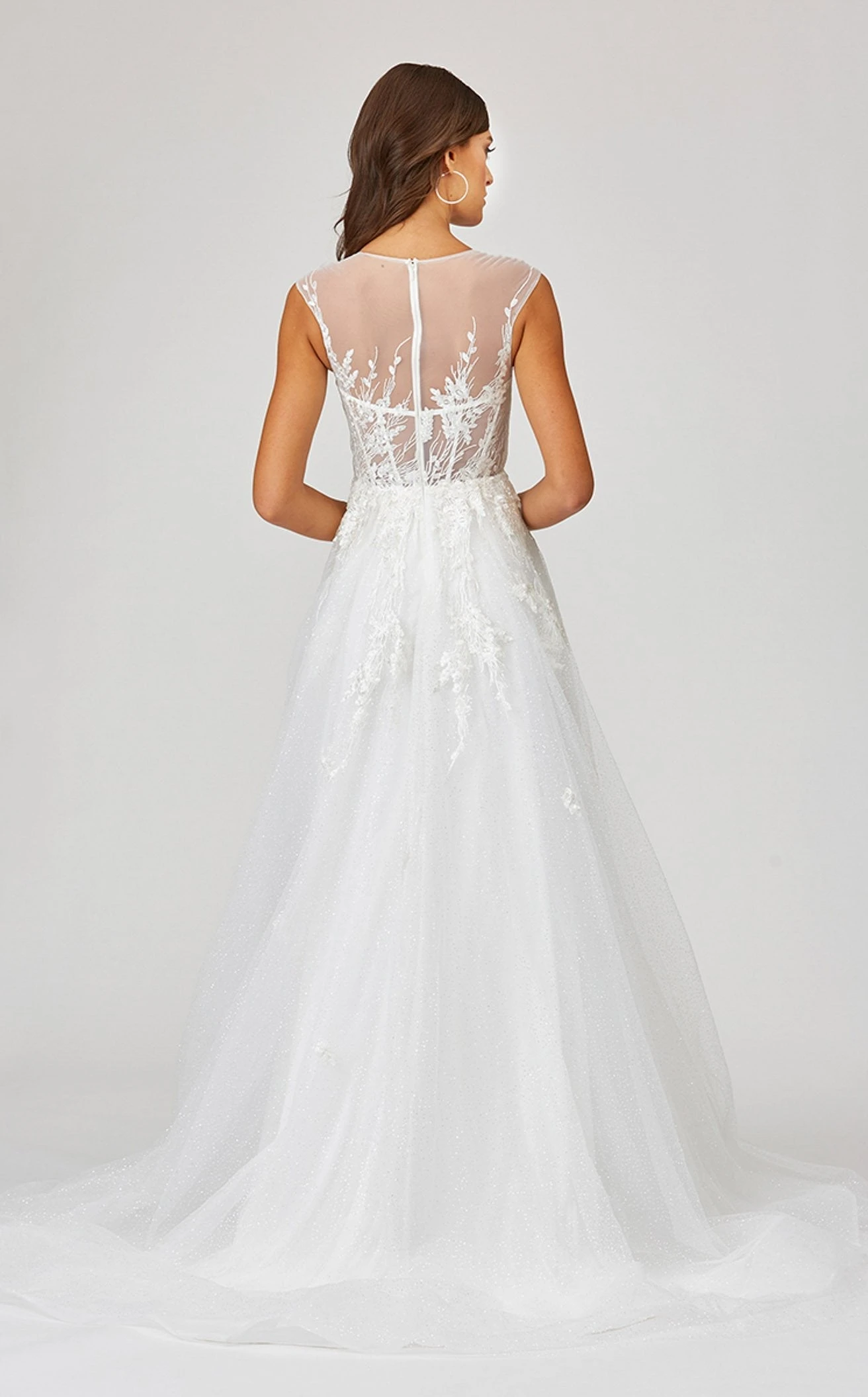 Look absolutely beautiful in Lara 51044 Dress. This sublime piece features a a-line silhouette and lace & embroidery. The sleeveless bodice has a high neckline neckline and a natural waist.