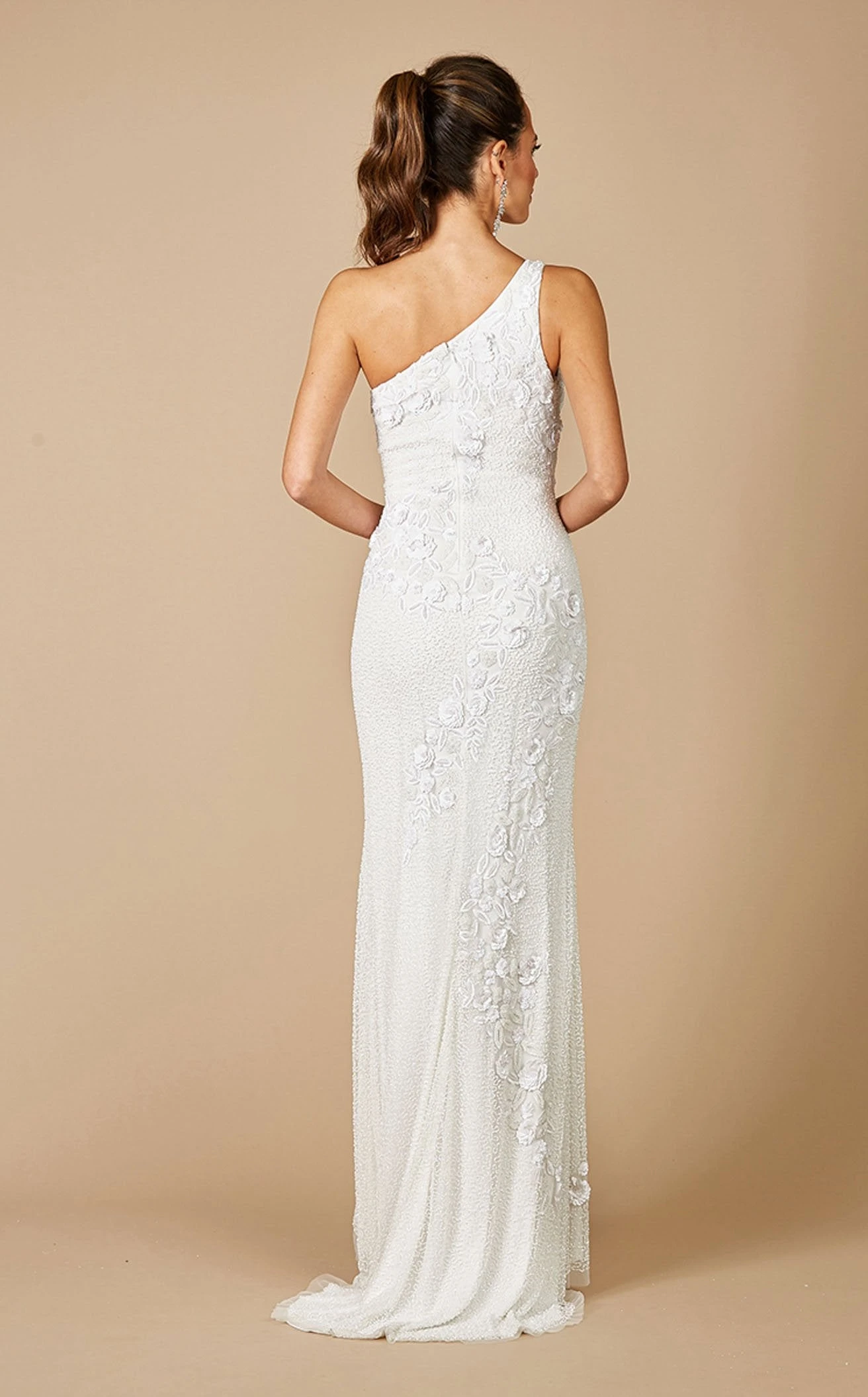 Asymmetric One-shoulder Neckline Embellished Fitted Long Gown by Lara