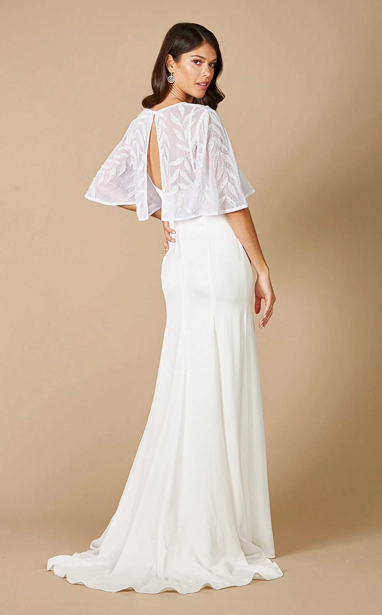Exquisite V-neck Open Back Evening Gown with Illusion Cape by Lara