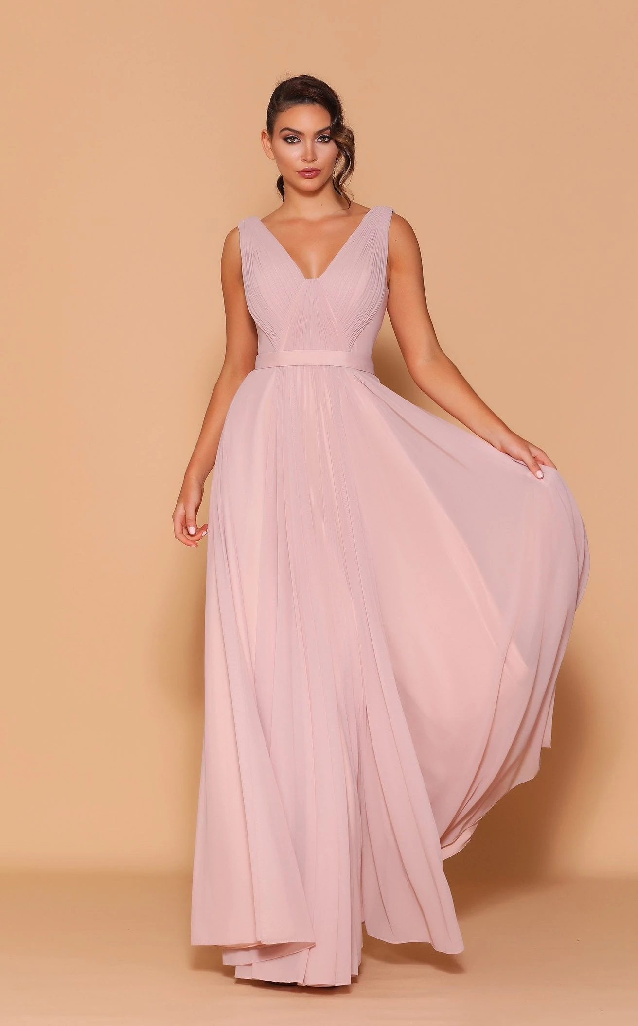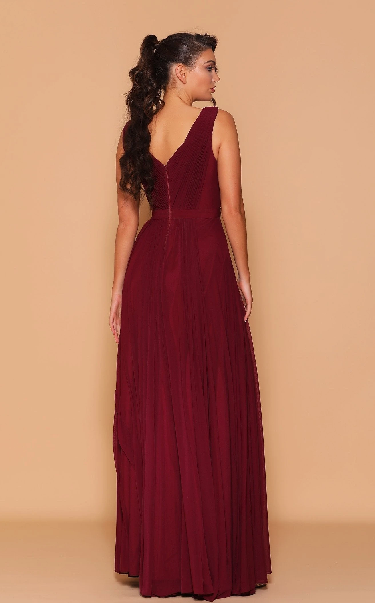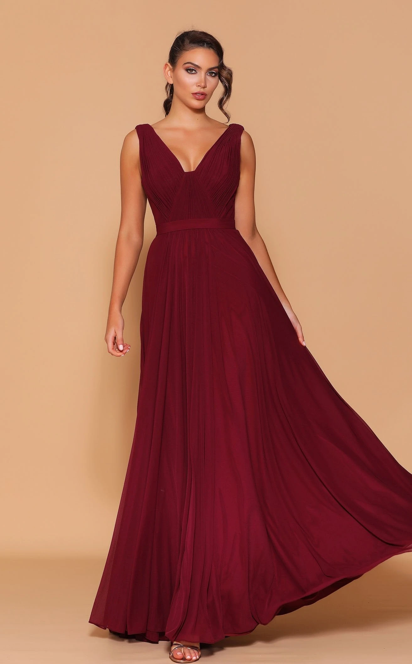You’d light up the party like fireworks in this Les Demoiselle long gown! The boned bodice, V neckline, flattering gathering detailing, V-cut at back, and waist belt are the chic features of this stunning evening gown. The look of this fully lined gown is completed by the flowing floor-length skirt with draped details.