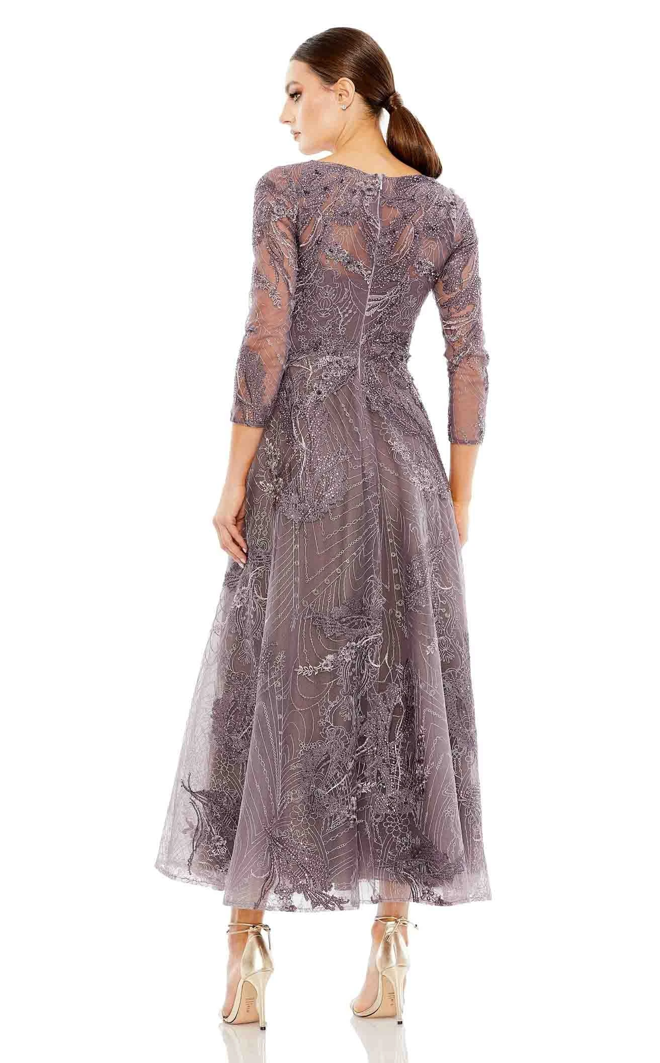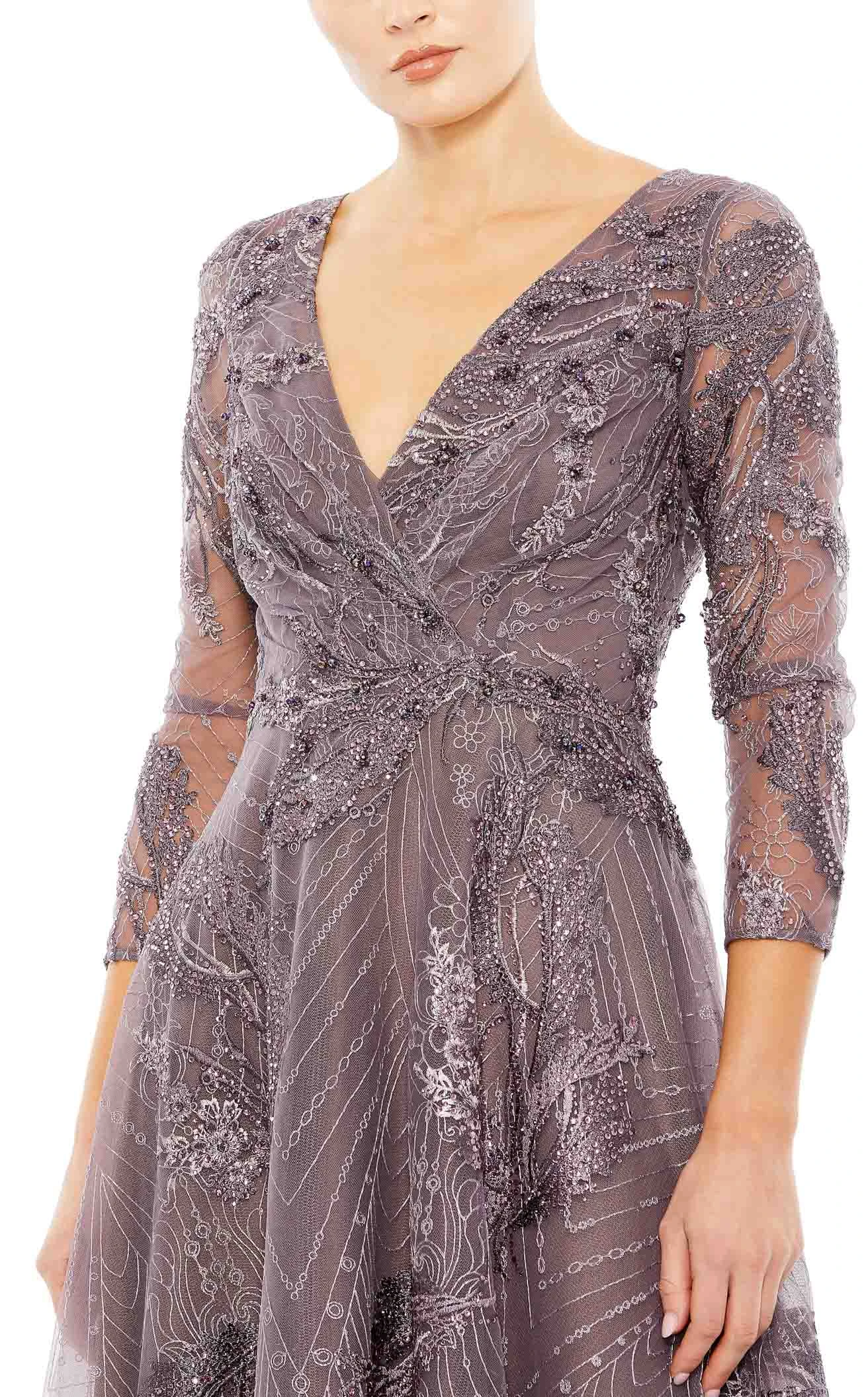 Plunging V-neckline ¾ Sleeve Lace Embroidered A-line Dress by Mac Duggal