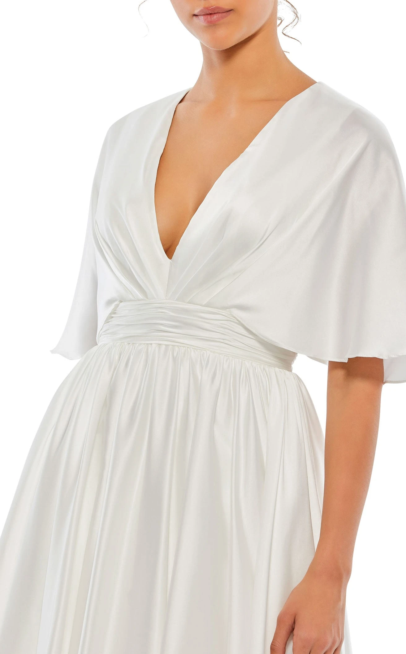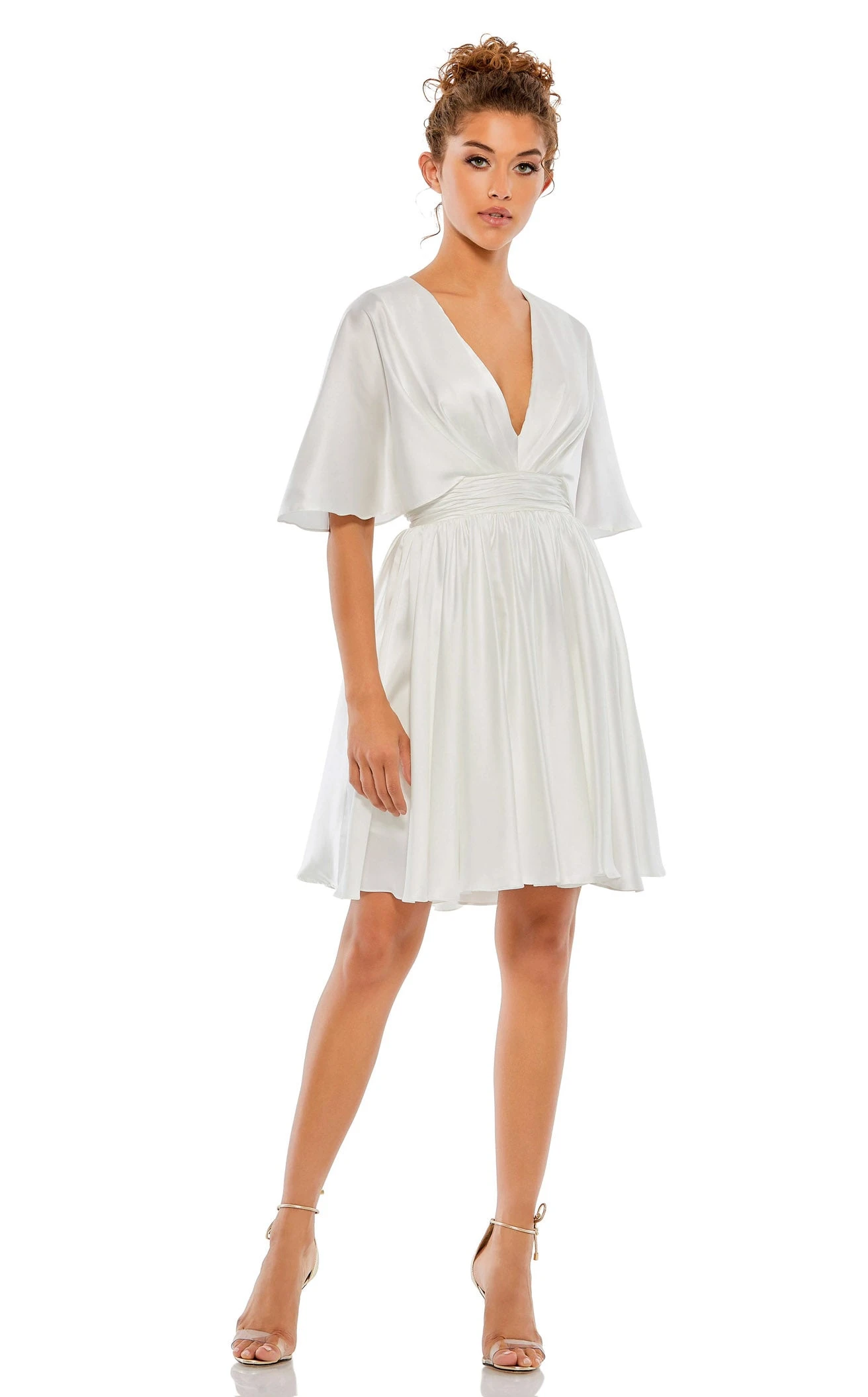 Satin Ruffle Sleeves Shrink Waistline A-line Short Dress by Mac Duggal