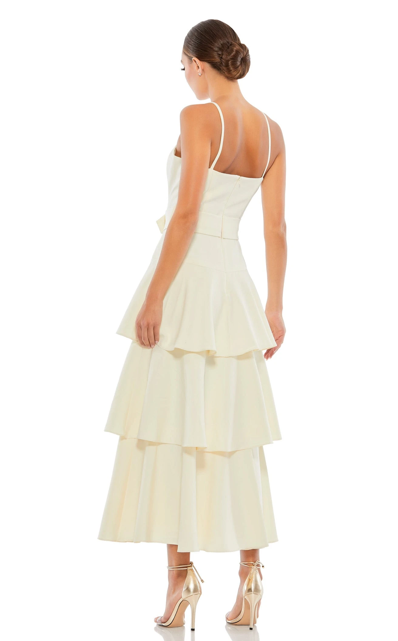 Straight Across Neckline Buckle Belt Ruffle Layer Dress by Mac Duggal