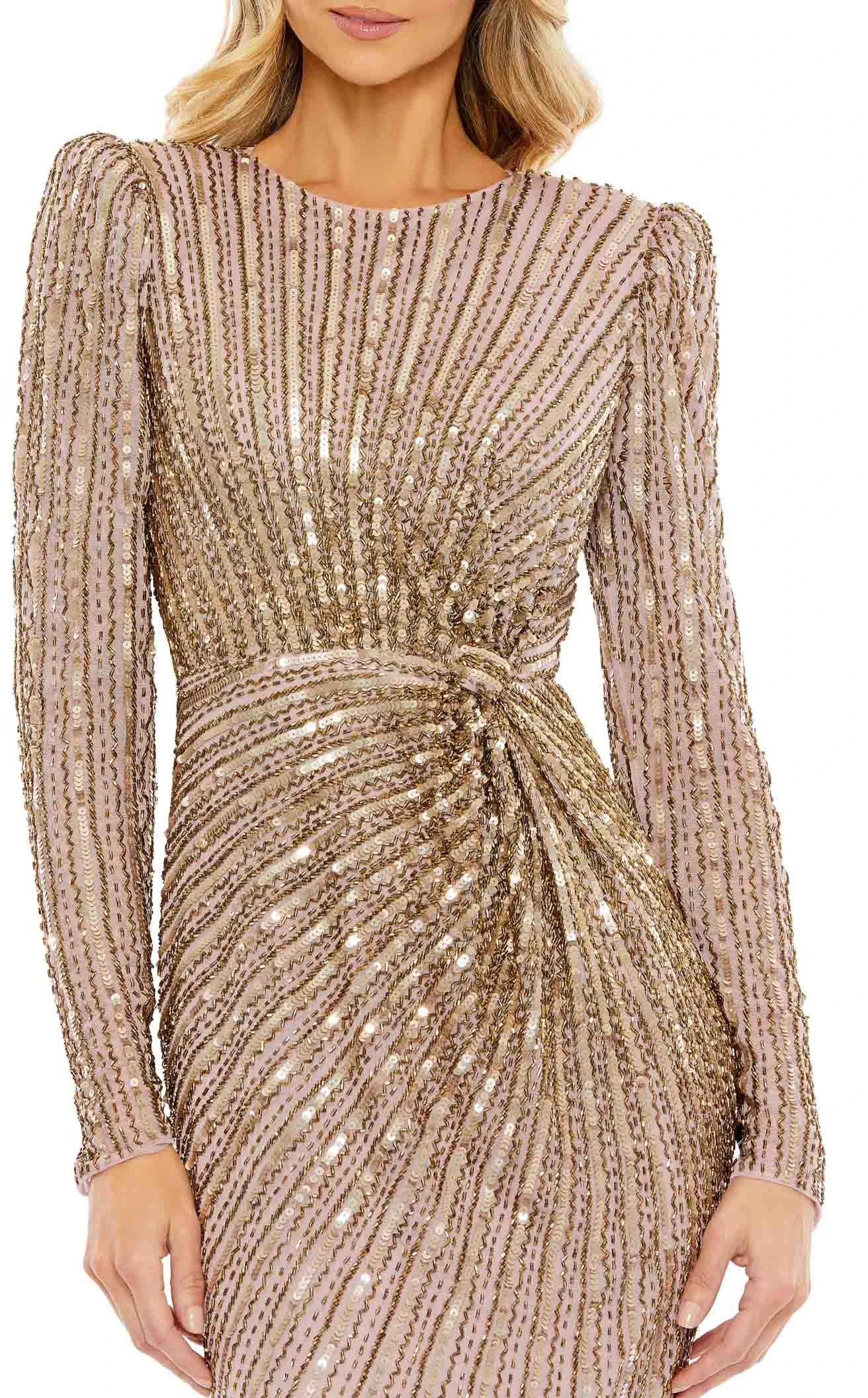 High Neckline Sequin Embellished Knotted Waist Fitted Dress by Mac Duggal