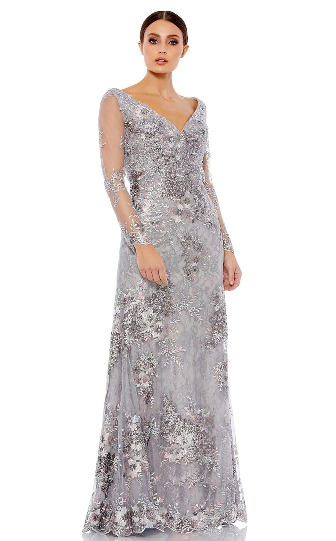 Look absolutely delightful in Mac Duggal 67539D Dress. This sublime piece features a column silhouette and glittering accents. The long sleeve bodice has a v-neck neckline and a natural waist.