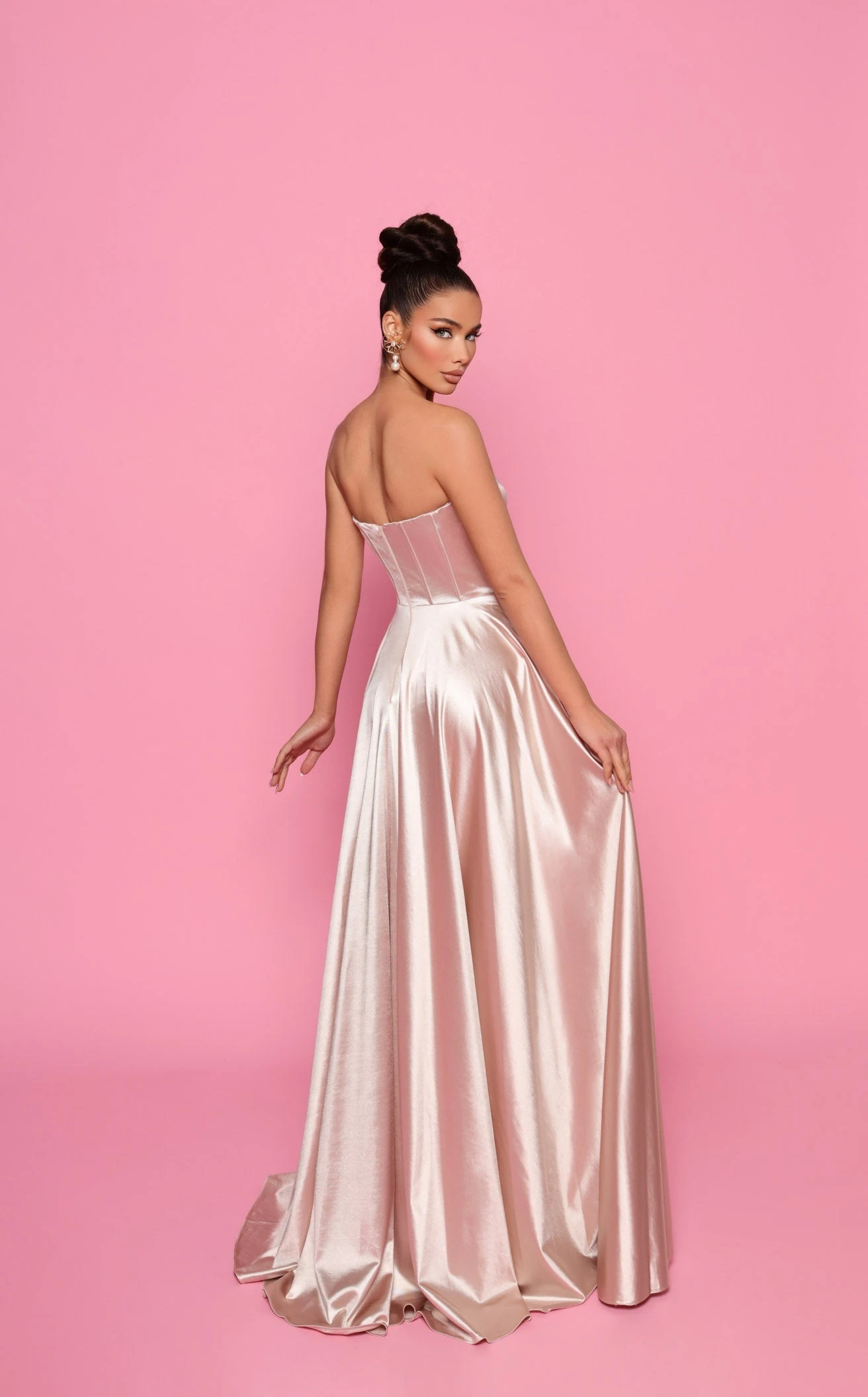 Bring in style with ease as you pull off a classic gown like this one designed by Nicoletta. It has an exquisite corset bodice that flatters boned detailing. The strapless layout is beautifully complemented by the straight-across neckline. It has a natural waistline and a full-length A-line skirt that ends with a swirl sweep.