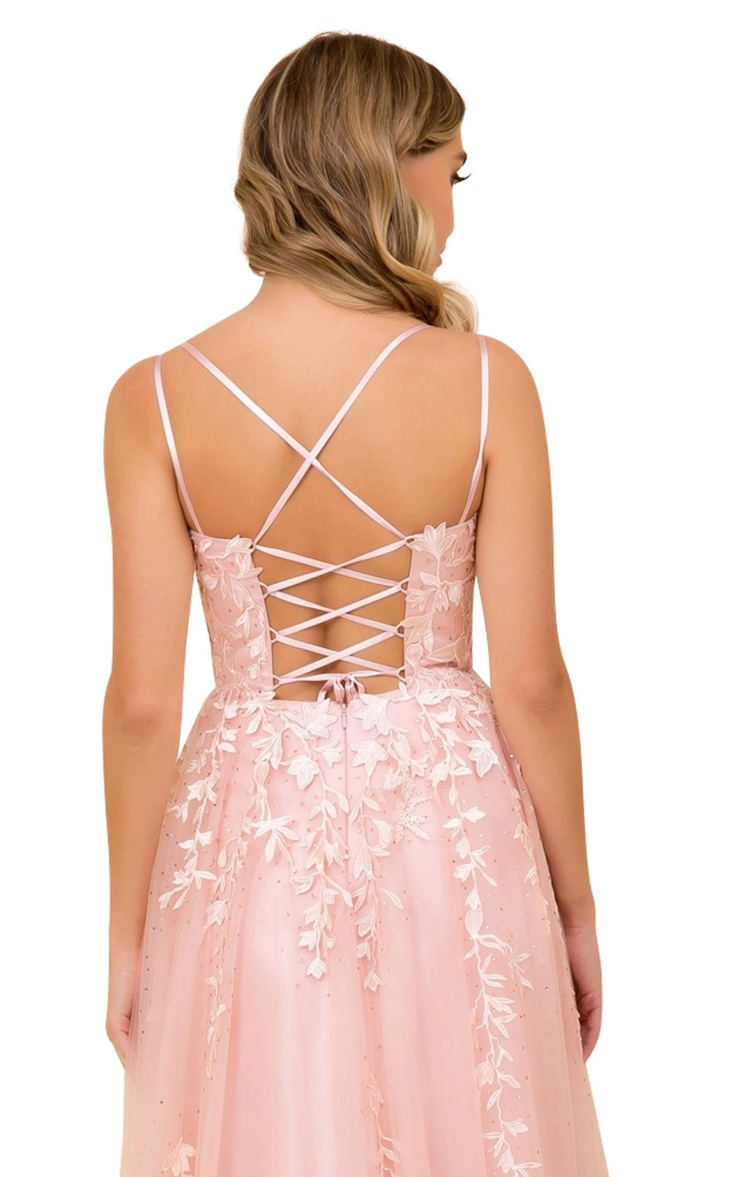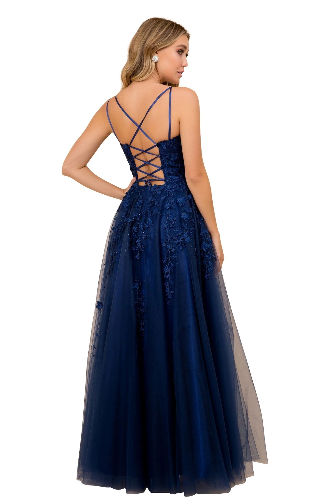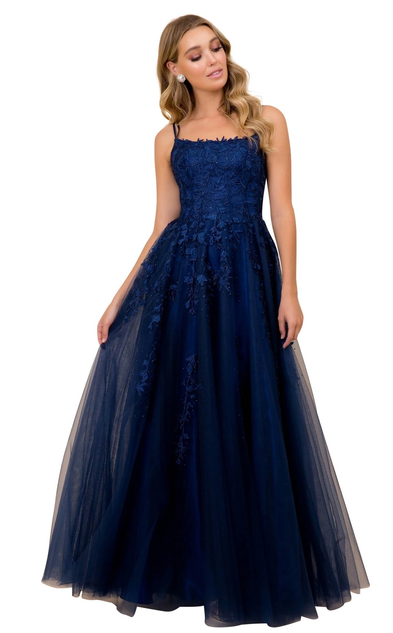 Got bored of your regular party look? Upgrade your style statement wearing this stylish piece from Nox Anabel C415. The fit-and-flare dress has gorgeous floral embroidery on the front bodice and cascades down the waistline. With a straight neckline, thin straps, and a full-length A-line skirt, this beautiful ensemble is sure to make you the highlight of the event!