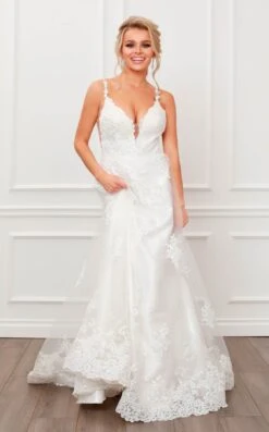 Look absolutely beautiful in Nox Anabel C461 Dress. This marvelous piece features a a-line silhouette and lace & embroidery. The sleeveless bodice has a v-neck neckline and a natural waist.