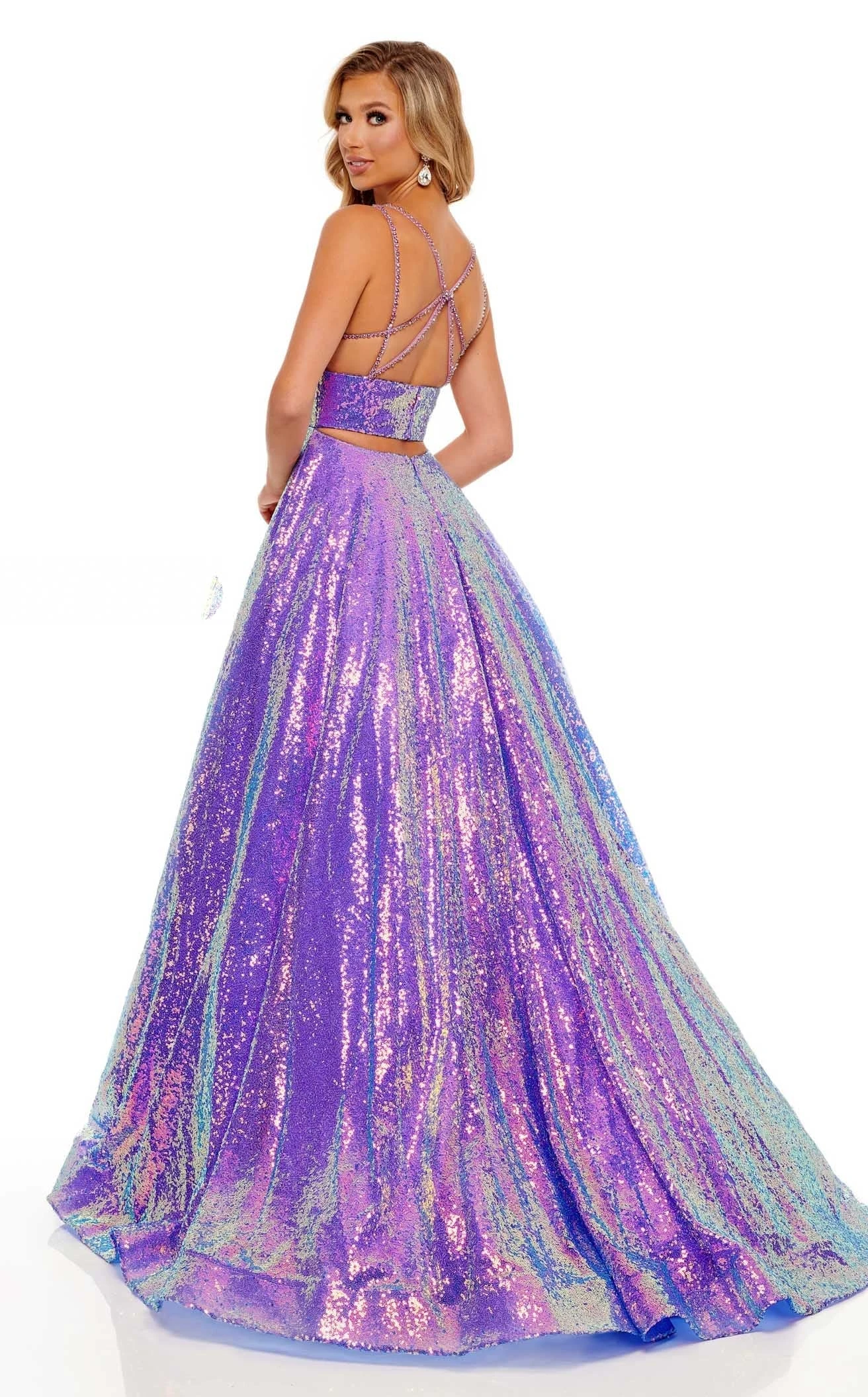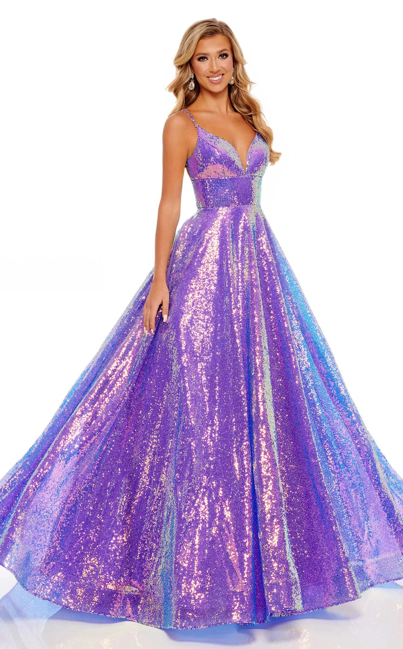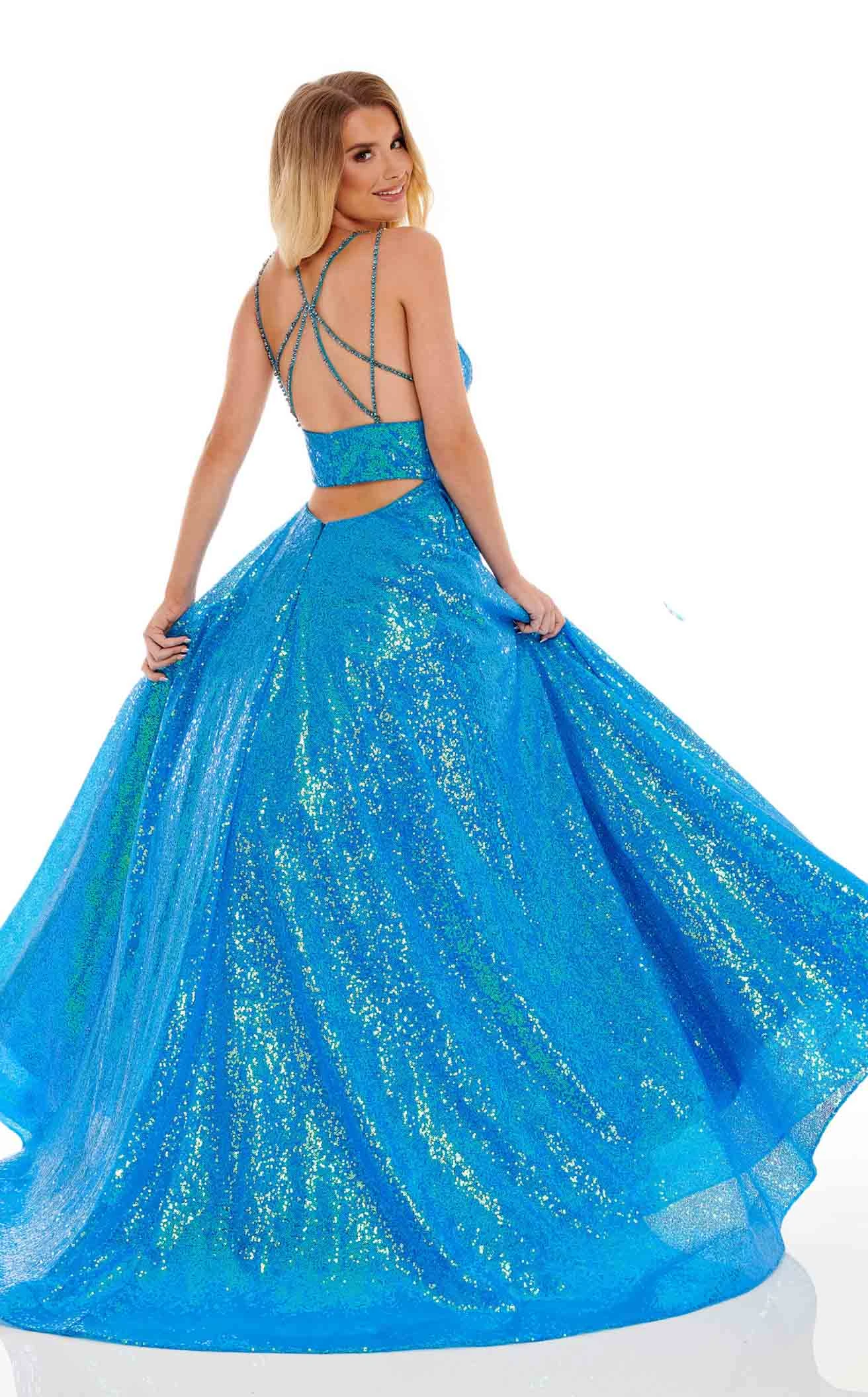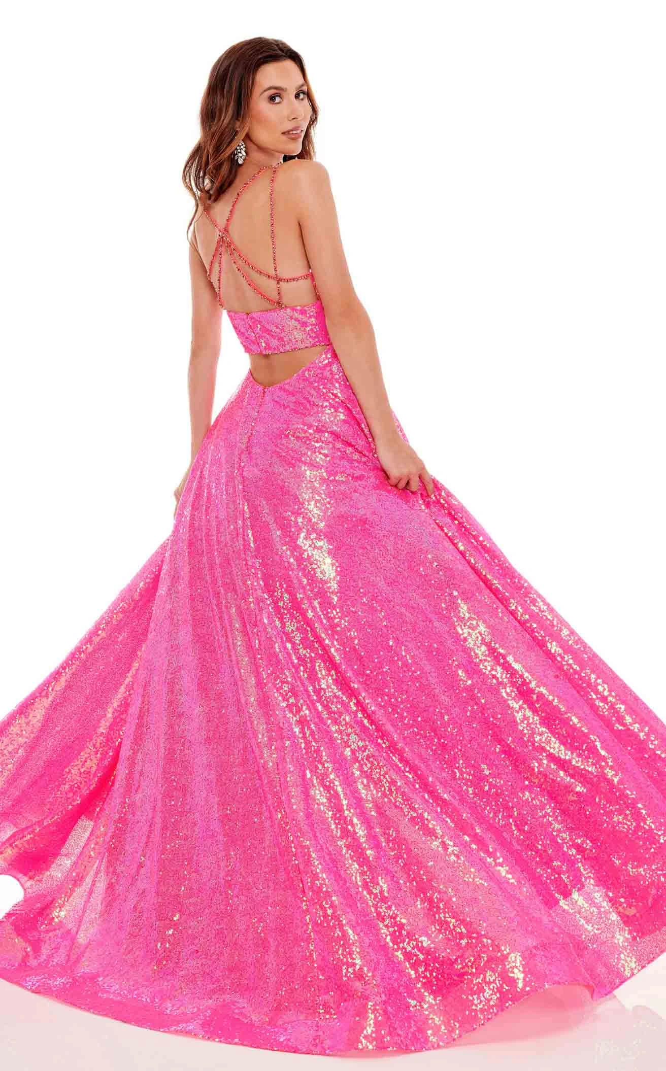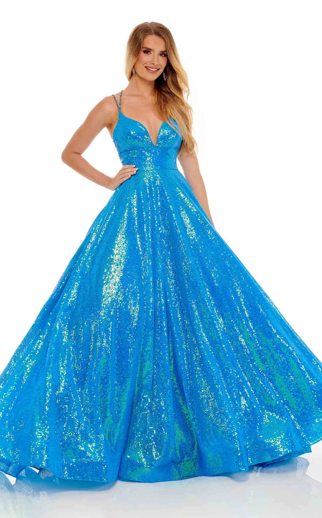 Give yourself a break from casuals and wear this dazzling piece of outfit designed by Rachel Allan 70130. The gorgeousness of this dress lies in the various aspects it serves like the sparkles from the top to the bottom, the bold sweetheart neckline with thin straps, the tight bodice with a cinched waistline, and the over-the-top A-line silhouette.