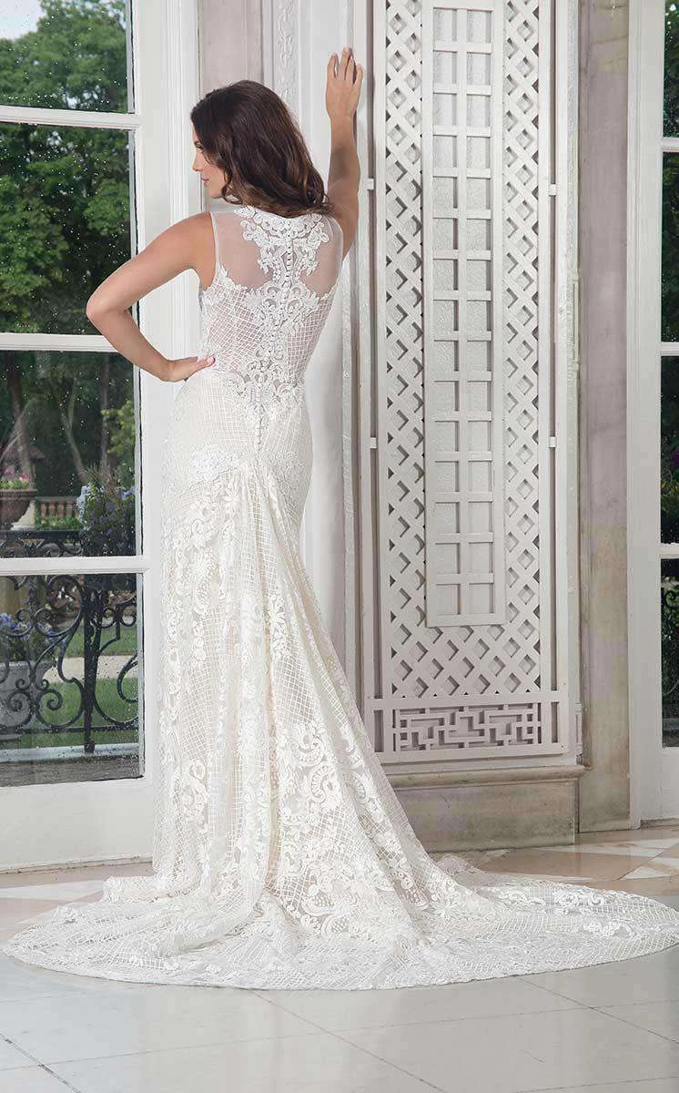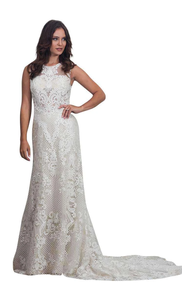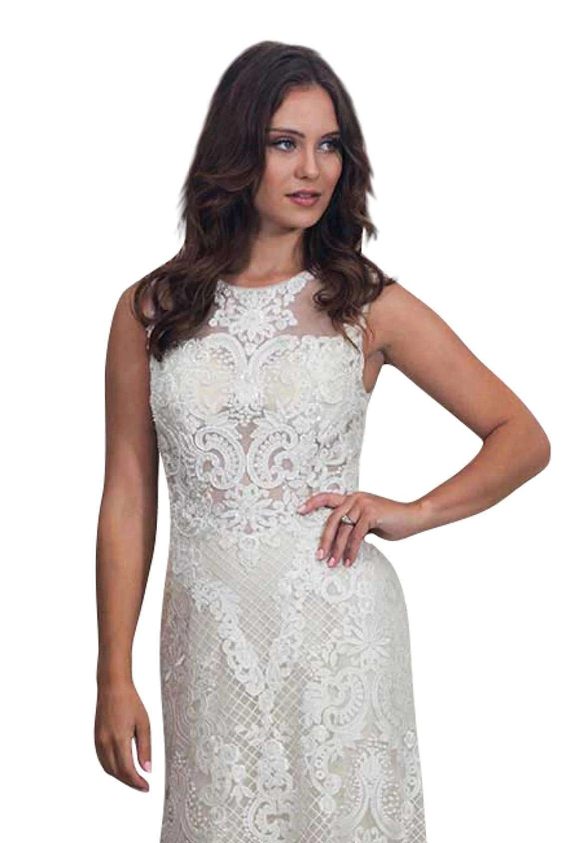 SKU: BMV3E 228993400856 Category: Wedding Dresses Tags: Column, High Neckline, Ivory, Lace & Embroidery, Long, Natural, No, Sleeveless, Wedding Dresses