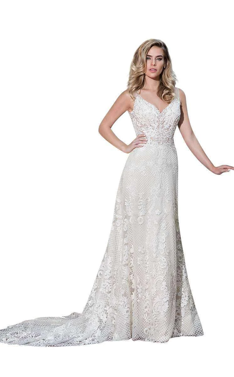 SKU: BMV3E 228993892376 Category: Wedding Dresses Tags: A-Line, Lace & Embroidery, Long, Natural, No, Sleeveless, V-Neck, Wedding Dresses