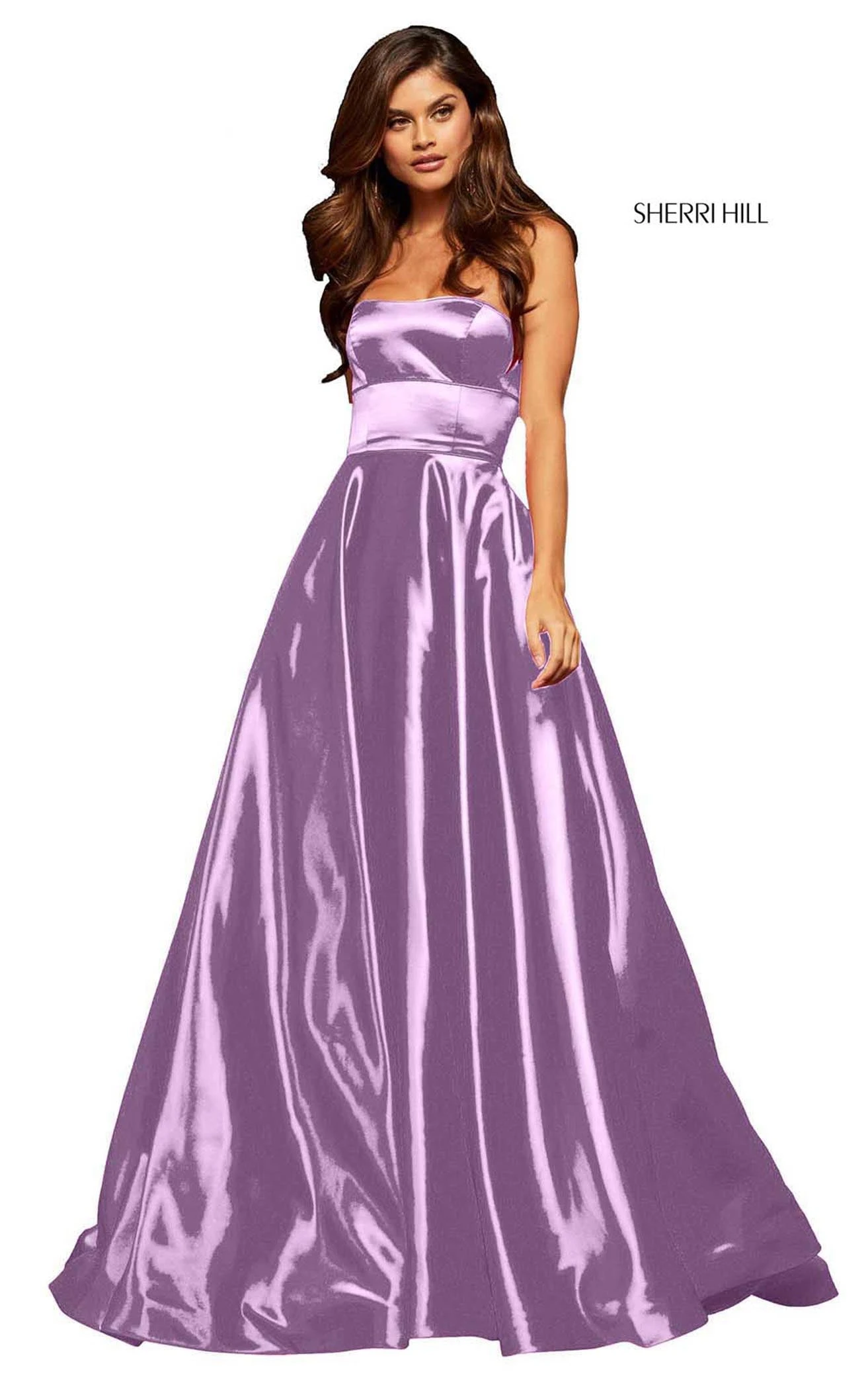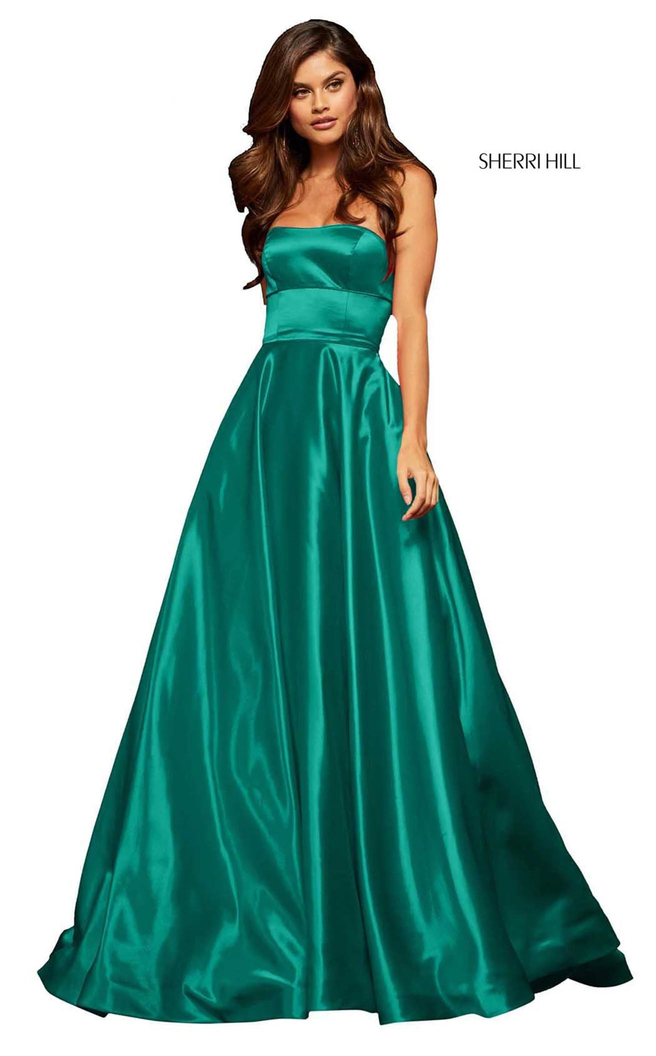 Strapless A-line gown with straight-across neckline from Sherri Hill